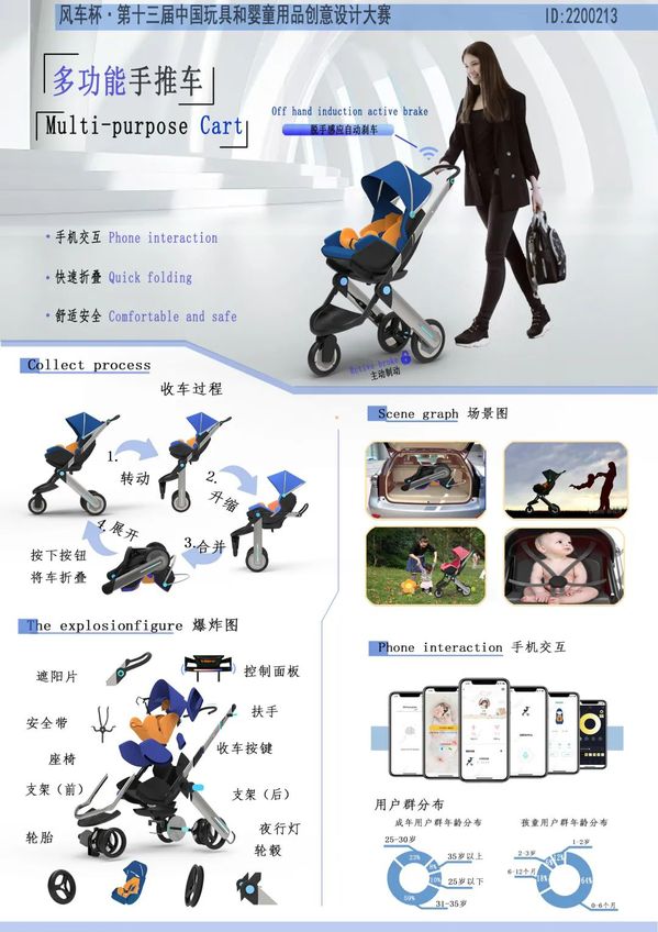 设计理念中结合了智能性和可持续性,改进了婴儿车的操作模式,还集成了平衡踏板车功能。