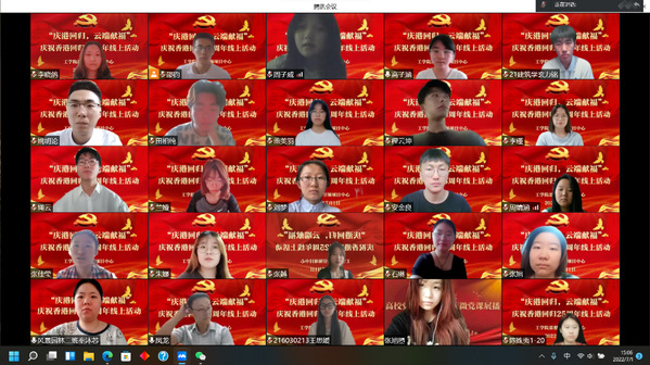 在香港回归祖国怀抱25周年来临之际,工学院学生党支部于近日举办“庆港回归,云端献福”线上活动。工学院党总支书记凤龙,全体学生党员以及部分学团干部50余人参加本次活动。