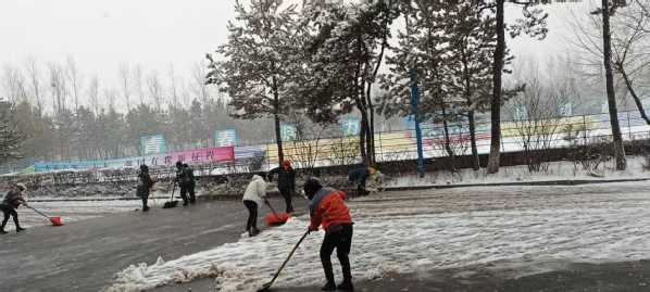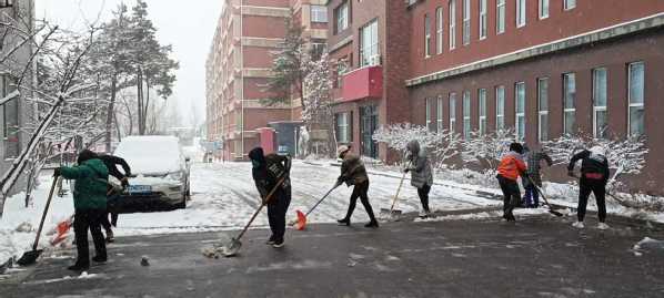 全体保洁员不辞辛苦、顶风冒雪用力挥动着手中的扫帚和铲锹,经过4个小时连续奋战,行政楼四周和教学楼门前的积雪全部清理完毕,校园主干道路清理出一条条小路供师生通行,为防止雪天路滑,校园中的几处陡坡路段的冰雪做了重点彻底清理,校园道路恢复了畅通,为师生安全出行提供了保障。