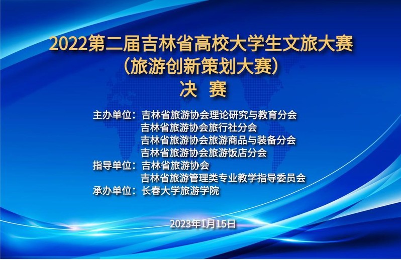 1月15日,由吉林省旅游协会、吉林省旅游管理类专业教学指导委员会指导,吉林省旅游协会理论研究与教育分会、吉林省旅游协会旅行社分会、吉林省旅游协会旅游商品与装备分会、吉林省旅游协会旅游饭店分会共同主办,6165cc金沙总站检测中心承办的以“文化创意彰魅力·文旅融合促振兴”为主题的2022第二届吉林省高校大学生文旅大赛(旅游创新策划大赛)决赛在云端成功举办。