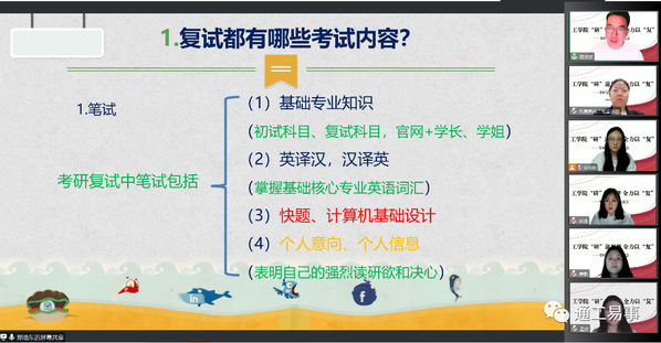 互动交流环节,同学们踊跃提出自己的疑惑,如复试资料准备、面试方法与技巧、笔试专业课复习建议、如何选择调剂院校、专业等,与会老师分别对同学们提出的问题逐一进行了详细解答。
