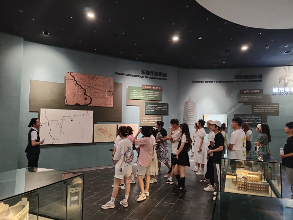 在长春市城乡规划展厅,通过工作人员的详细讲解,师生首先以规划为主线参观了从长春设治初期、中东铁路用地规划到伪都新京规划建设,再到新中国成立之后长春几大产业的发展成就,了解了近代以来的城市格局和发展脉络。通过百年长春展区中以老街、老店、传统民居等民俗文化为主要内容的情景式体验,充分感受到长春在时代更迭中独具特色的文化元素。