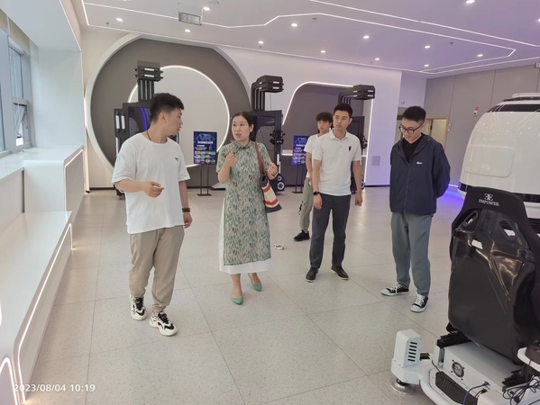在公司领导陪同下,考察组参观了元宇宙沉浸式体验中心、蜗牛空中图书馆、VR影核电竞馆等。