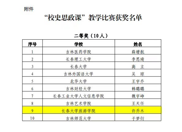 近日,吉林省教育厅公布吉林省首届“校史思政课”教学比赛结果,学校党委宣传部部长、“学习筑梦”思政课教师许乔木代表学校参赛,并荣获二等奖。