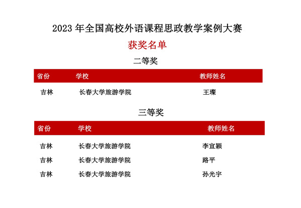 2023年全国高校外语课程思政教学案例大赛获奖名单
