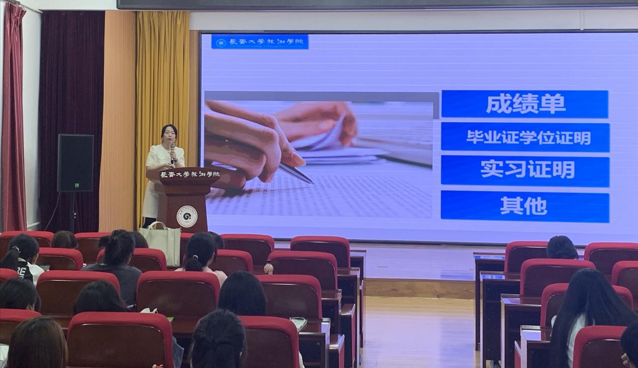 会上,国际交流处高岩老师首先向同学们介绍了部门职能与合作院校,分析了学校历年出国留学人员数据,鼓励有留学梦想的学生勇敢走出去看世界,并组织了现场填写出国留学调查问卷。