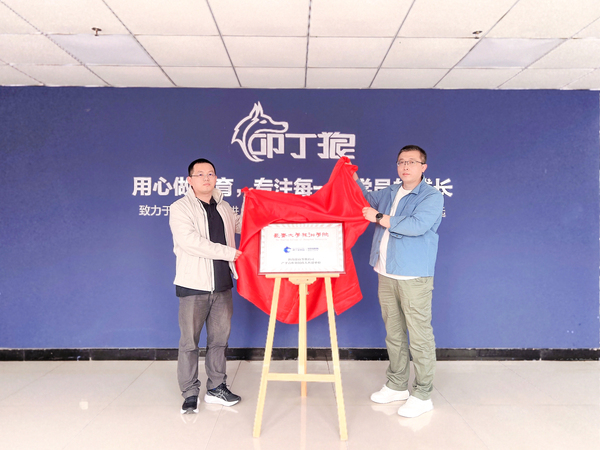 徐震一行首先走访了视觉传达设计专业在“教育部产学合作协同育人项目”中的共建单位——沈阳叩丁狼科技有限公司。在调研座谈中,双方对已完成的共建课程进行总结,就即将开展的校企共建课程《UI界面设计》《数字媒体设计与制作》进行讨论。达成共识后,校企双方签订校企合作协议,并举行了“教育部产学合作协同育人共建单位”揭牌仪式,这一举措标志着双方合作迈向了新的高度。