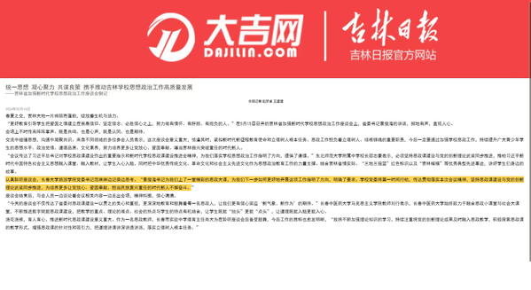 为迅速贯彻落实习近平总书记对学校思政课建设作出的重要指示、全国新时代学校思政课建设推进会及吉林省加强新时代学校思想政治工作座谈会会议精神,学校第一时间行动,第一时间落实,以“第一议题”形式传达重要指示、贯彻会议精神、研究落实举措。