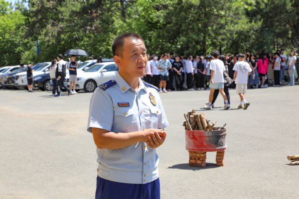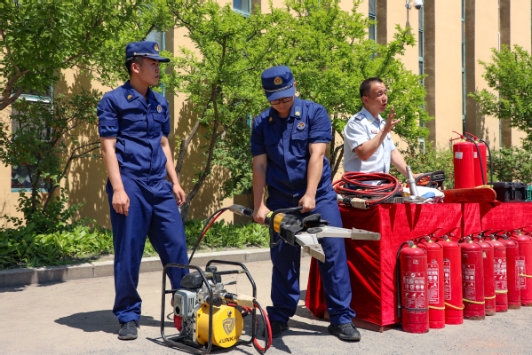 学校邀请双阳区消防救援站站长侯成龙进行现场讲解和演示。侯成龙介绍了常见的消防设施设备,展示了施救过程中使用的专业工具,讲解了发生火灾时的自救及逃生方法,并详细科普了各种灭火设施设备的工作原理和使用方法。