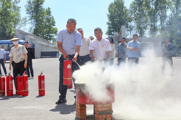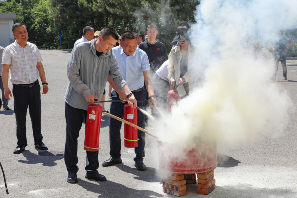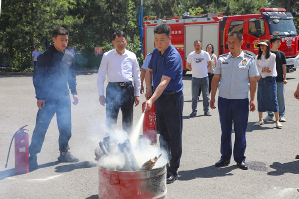 参训领导和教职工认真学习每个步骤和细节,熟练掌握相关设备的使用技巧,讲解结束后,在消防救援人员的指导下使用灭火器进行实际操作,亲身体验如何正确使用消防设施设备进行灭火和应对突发状况。