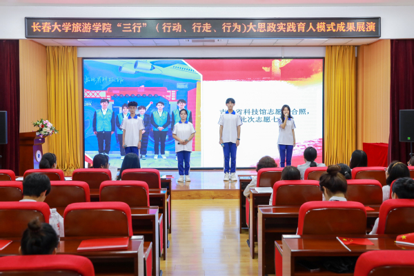 为庆祝中国共产党成立103周年和新中国成立75周年,引导青年学生共抒爱党情怀、共话祖国新貌、共享国庆喜悦,营造爱党爱国爱校的浓厚氛围,展现长旅学子争创一流、创新实干的精神面貌。6月24日,马克思主义学院联合学生工作处在筑梦报告厅举办“三行”(行动、行走、行为)大思政实践育人模式成果展演。“三行”大思政实践育人模式是贯彻落实习近平总书记关于“大思政课,要善用之”的重要指示精神,在学校党委“四力提升”党建领航行动计划引领下,结合学校教育教学评价工作安排部署,探索构建的实践育人新模式。本次展演是学校思政课实践育人成果的集中展示。