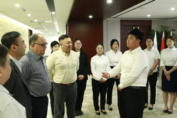张海涛向东北亚铁路集团的老朋友达赫诺夫斯基先生介绍了东北亚铁路集团与上海合作组织经贸交流中心的合作情况,随后引导达赫诺夫斯基先生参观了交流中心并就珲春铁路口岸基础设施建设、东北亚长旅号旅游观光班列、当前中俄经贸现状等进行了工作交流。达赫诺夫斯基先生高度赞扬东北亚铁路集团在中俄两国经贸物流发挥的积极作用,尤其对东北亚铁路集团在疫情的特殊时期克服一切困难保障两国物流畅通表示了感谢,表示全力支持东北亚铁路与经贸交流中心推进的合作项目,并加强俄联邦驻华商务代表处与经贸交流中心的合作,共同推进中俄间经贸往来。