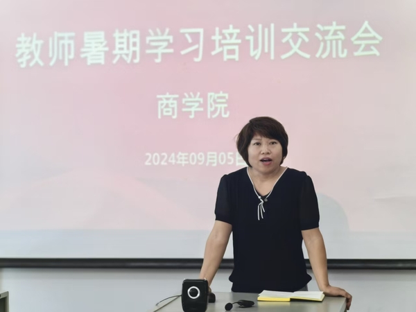 青年教师代表刘秀娟分享了参加暑期教师培训后的心得体会。她表示,此次培训对自身教育教学技能的形成、职业道德的培养和教学水平的提高具有重大影响。她结合自身实际情况,分析目前在教学、科研工作中存在的问题,并提出后续工作的目标与举措。