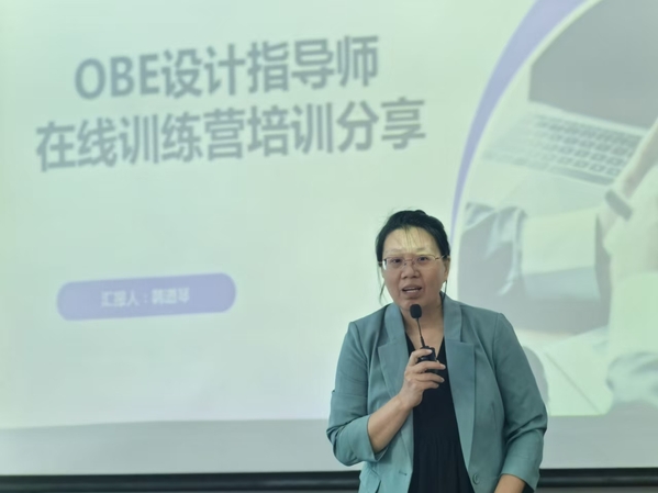 物流管理教研室主任刘瑀瑶分享了在“高等学校骨干教师教育教学综合能力提升专题研修班”学习成果。她指出,OBE理念强调教育是一个持续改进的过程,教师需要根据学生的学习成果来调整教学策略和内容,并实现讲授者向引导者的角色转变。同时,OBE教学理念对于提升教学质量和人才培养水平具有重要意义,教师要不断提升自己的专业素养和教学能力,学会运用各种教学工具和方法,进一步提升教学水平,推动课堂教学改革向纵深发展。