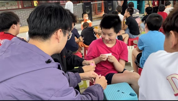 康复中心院长首先介绍了孤独症儿童的情况,这些被称为“星星的孩子”患有神经发育障碍,表现为社交障碍、语言发育落后和重复刻板性行为,严重的甚至会出现自虐倾向。但这些孩子们在康复中心老师的陪伴关爱下已经逐渐开朗乐观起来,掌握了基本自理能力,并且能够进行简单的沟通。看到哥哥姐姐们来到,他们热情的喊出:“哥哥、姐姐们好!中秋节快乐!”这些看似简简单单的话语,对于这些自闭症儿童们却是需要学习很久才能够说出的话。
