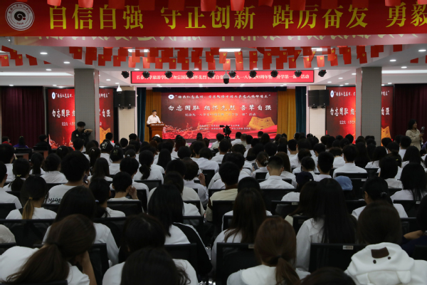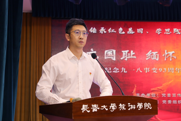 铭记历史,勿忘国耻。9月18日下午,学校党委宣传部、马克思主义学院联合党委组织部、党委学生工作部、校友办和校团委在大学生活动中心举办“勿忘国耻 缅怀先烈 吾辈自强”纪念九一八事变93周年暨“开学第一课”活动,特别邀请长春市翰林起点学校党支部书记兼校长、学校2017届毕业生于宗泽讲授“开学第一课”。活动由党委宣传部部长张帆主持。