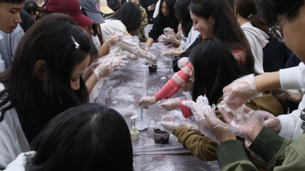 本次活动以手工制作月饼为主要活动环节,融入投壶、中秋诗词问答以及猜灯谜等文化娱乐项目。活动吸引了广大师生的积极参与,激发了他们对中华优秀传统文化的热爱之情,为同学们营造了一个浓郁温馨的节日氛围,让未能归家的学子感受到家的温暖。