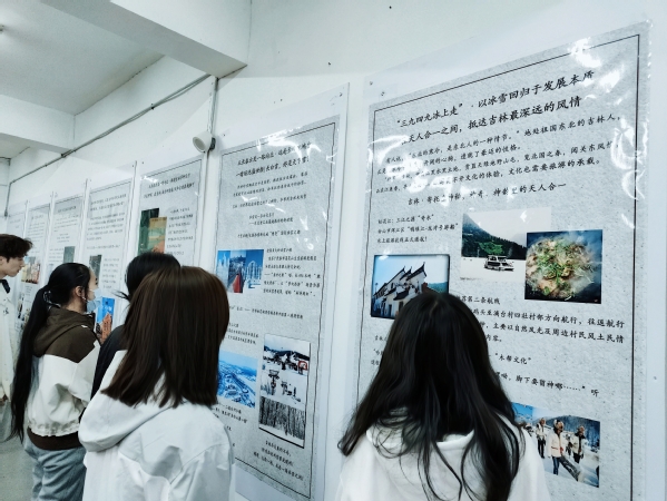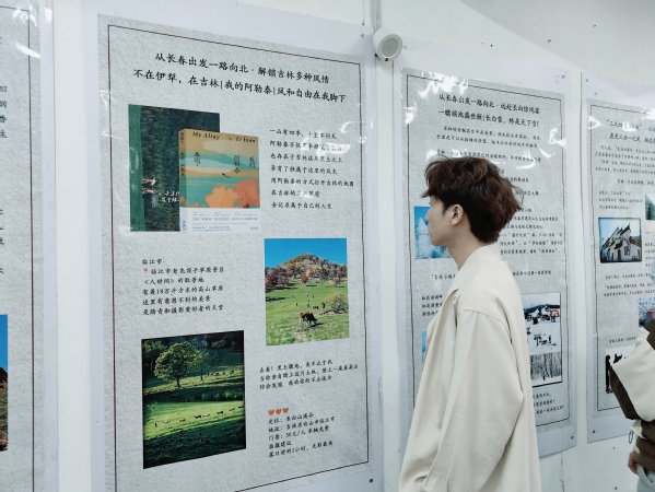 展览现场,学生们被一幅幅精美的图片和生动的文字介绍所吸引。从浪漫的“北国春城”到风光壮美的长白山,从延吉的朝鲜族风情到珲春的边境小镇,吉林的多元文化在这里得到了充分的展现。