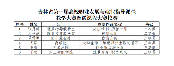为提高学校职业发展与就业指导课程质量,提升就业指导教师队伍整体水平,根据省教育厅《关于举办吉林省第十届高校职业发展与就业指导课程教学大赛暨微课程大赛的通知》文件精神,教师教学发展中心组织开展吉林省第十届高校职业发展与就业指导课程教学大赛暨微课程大赛校赛。
