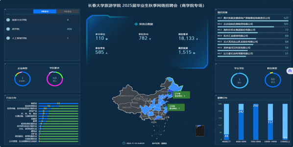 长春市人才服务局、双阳区人力资源和社会保障局,学校招生就业处全体人员,商学院党政领导班子、毕业班辅导员,2025届536名专升本毕业生、580名毕业生线下线上参加招聘会。
