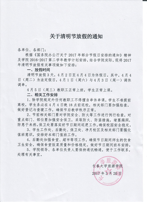 关于2017年清明节放假通知