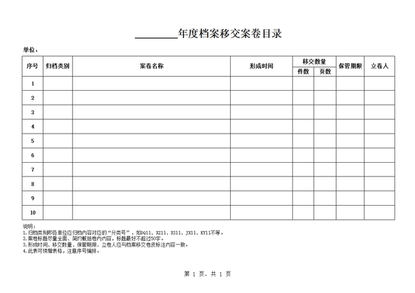 2024 文书类档案--档案移交目录封皮、案卷目录、卷内目录.xls