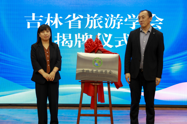 随后,田伟毅和孙利艳共同为吉林省旅游学会揭牌。