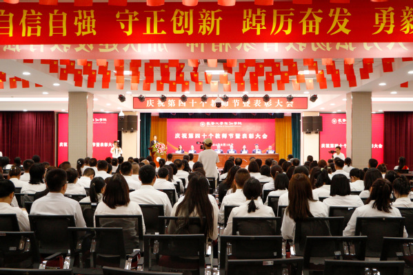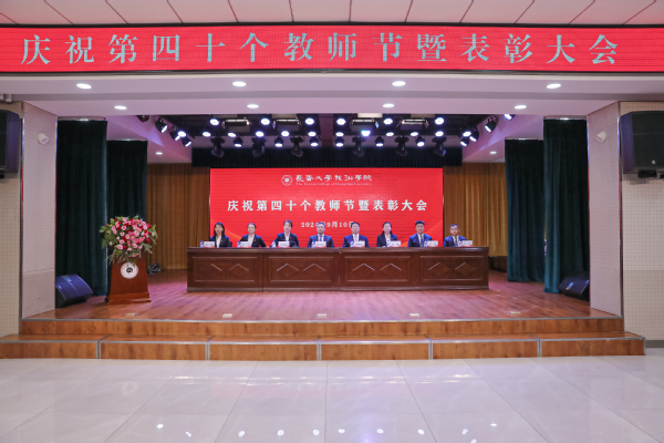 下午,学校在大学生活动中心召开庆祝第40个教师节暨表彰大会。大会以“大力弘扬教育家精神,加快建设教育强国”为主题,表彰奖励在立德树人、教学科研、创新创业、学生管理工作中涌现出的先进典型。学校副董事长张海涛、校长刘耀辉、党委书记范琳琳及学校领导班子成员出席会议,与全校教职员工共同庆祝节日,感受人民教师的光荣。会议由范琳琳主持。