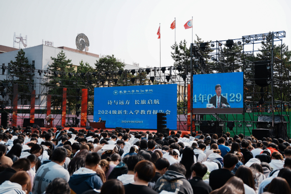 金秋九月,秋意正浓,为助力2024级新生顺利跨越从高中生到大学生的身份蜕变,尽早确立个人发展的明确目标,9月29日上午,学校在运动场召开2024级新生入学教育报告会。学校校长、博士生导师刘耀辉教授为2856名2024级新生作入学教育报告。各学院党总支书记、全体2024级新生辅导员共同聆听。报告会由党委副书记高阳主持。