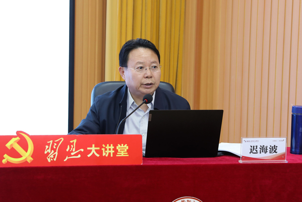 11月11日下午,学校在筑梦报告厅举行党委理论学习中心组(扩大)专题培训暨习思大讲堂报告会,特别邀请学校客座教授、白城师范学院党委书记、二级教授、博士生导师、国务院特殊津贴获得者迟海波教授作专题辅导报告。学校党委理论学习中心组成员、校长助理、各学院院长、各相关职能部门负责人、马克思主义学院全体教师及全体辅导员参加学习。党委宣传部部长张帆主持会议。