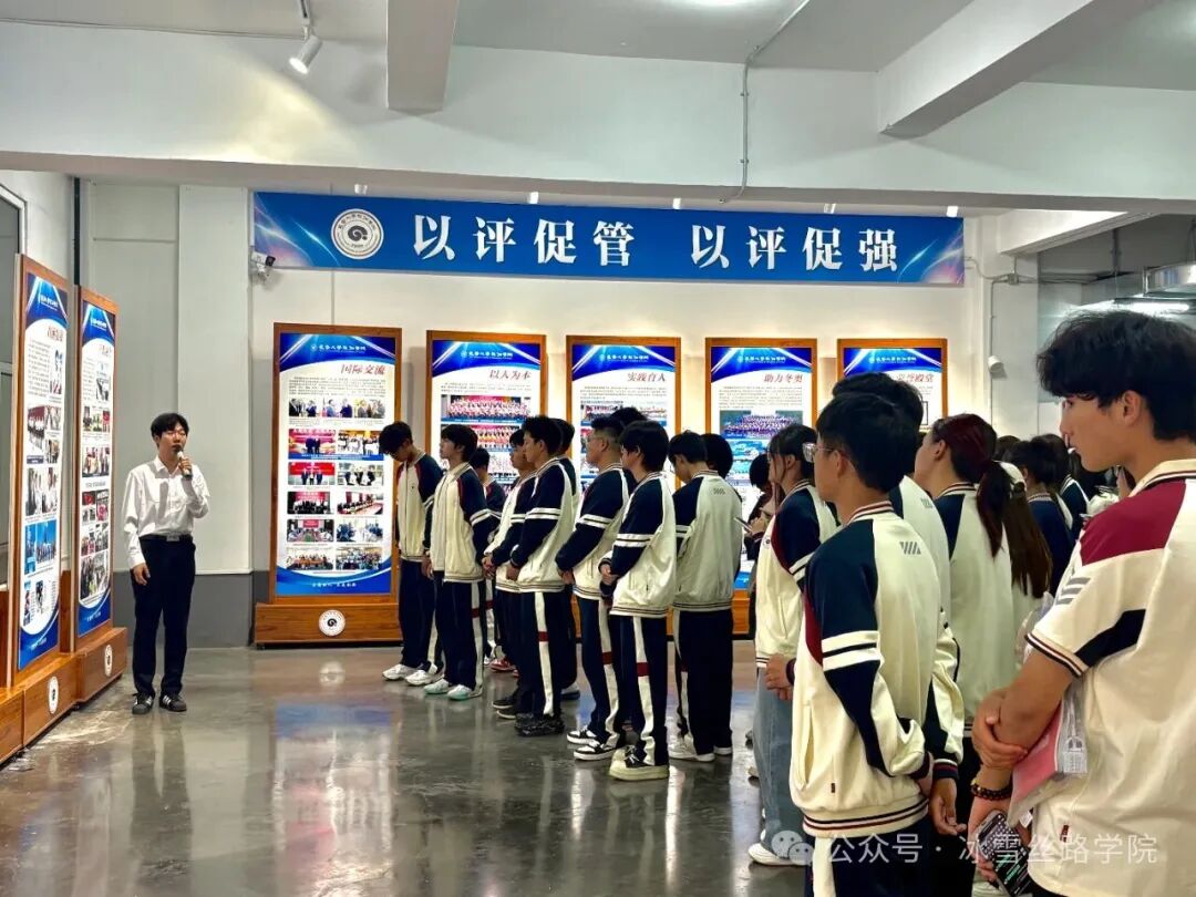 随后,讲解内容延伸至学校办学成果展。从学校创办初期的办学初心,到不同发展阶段的重要突破;从学科专业建设的特色成果,到服务冰雪丝路建设、助力东北振兴的实践举措,讲解员通过一幅幅历史照片、一段段发展故事,系统呈现了学校扎根地方、砥砺前行的奋斗历程,以及“以文化人、以史育人”的育人理念。新生们认真聆听、不时驻足,进一步增强了对学校的认同感与归属感。