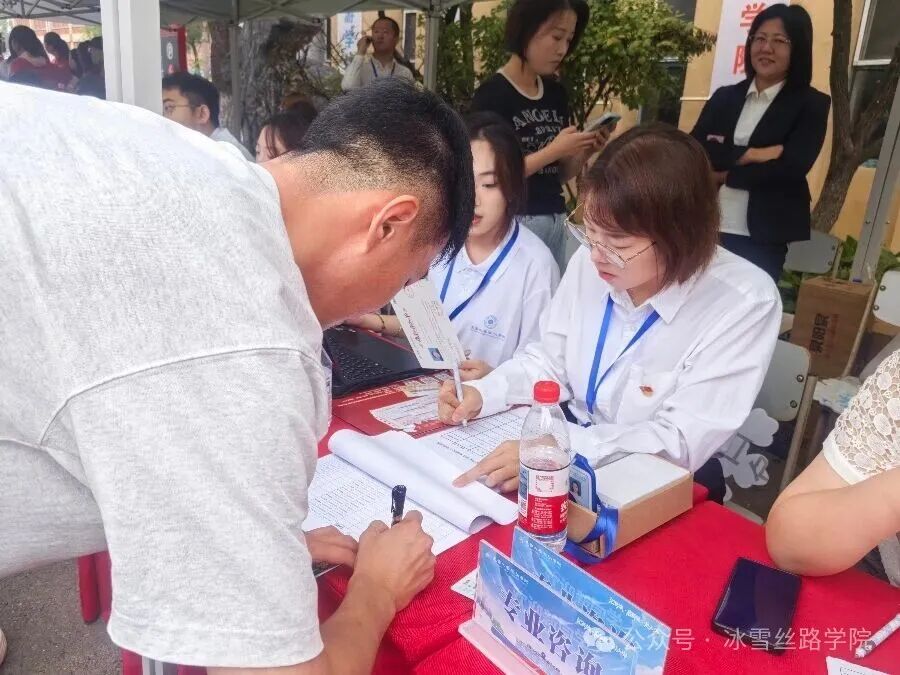 在迎新现场,学院特别安排了全天候专业老师为新生及家长提供一对一的专业讲解。从冰雪运动装备设计到跨境电商实训,老师们耐心解答疑问,帮助新生快速了解专业特色与未来发展方向,为即将开启的大学学习奠定坚实基础。