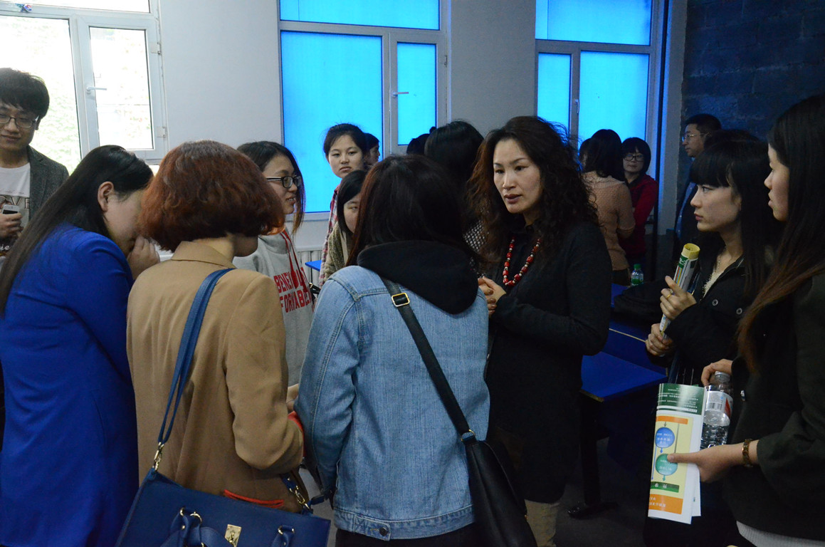 说明会结束,裴仙花、李颖、许瑗姬三位老师与台下的同学们展开了更加细致的交流沟通,同学们提出对于赴日就职的相关疑问,问题大都围绕在语言学习、文化交流、就业前景、所需费用等方面,三位老师全面耐心地给予解答,与会的同学们收获很大。