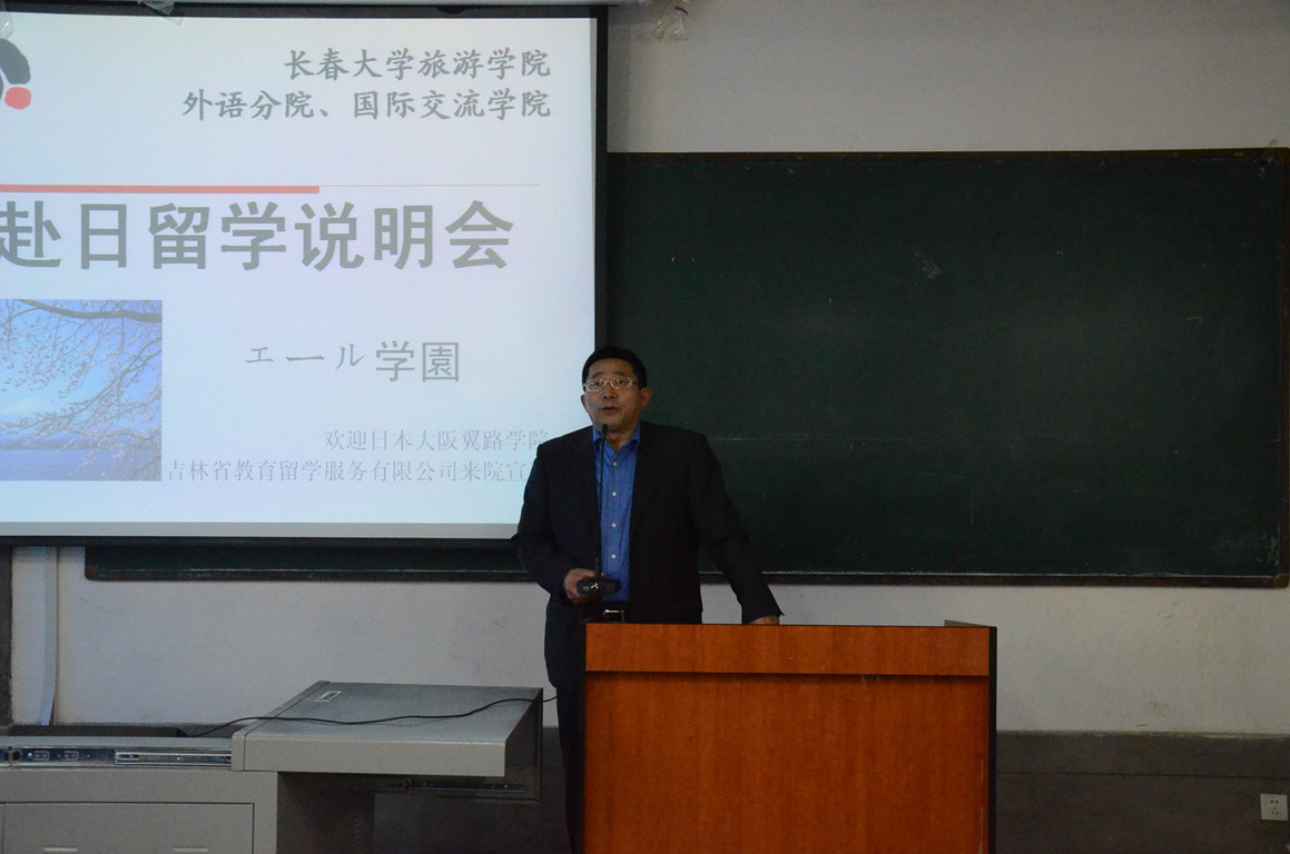 为使广大同学更加了解赴日本留学的具体要求,解答大家对赴日留学相关情况的疑问,金沙官网外语分院、国际交流学院于2013年4月17日下午在教学楼247教室举办了一场赴日留学说明会,外语分院、国际交流学院院长黄江,院办主任满歆琦,国际交流学院院办主任赵坤,学办主任许乔木,分院团委书记孙野,吉林省教育留学服务中心有限公司代表,日本大阪翼路学园代表,以及外语分院师生共150人参加。