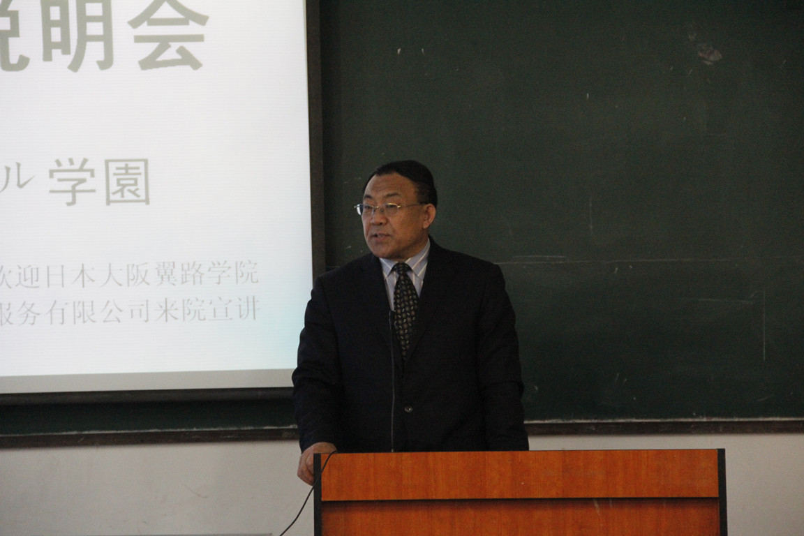 此次说明会由外语分院、国际交流学院院长黄江主持,吉林省教育留学服务中心有限公司总经理金继业先生、裴仙花老师、李颖老师,日本大阪翼路学园本部长�村真先生、许瑗姬老师五人组成说明团,向日语专业学生进行赴日留学介绍和说明。