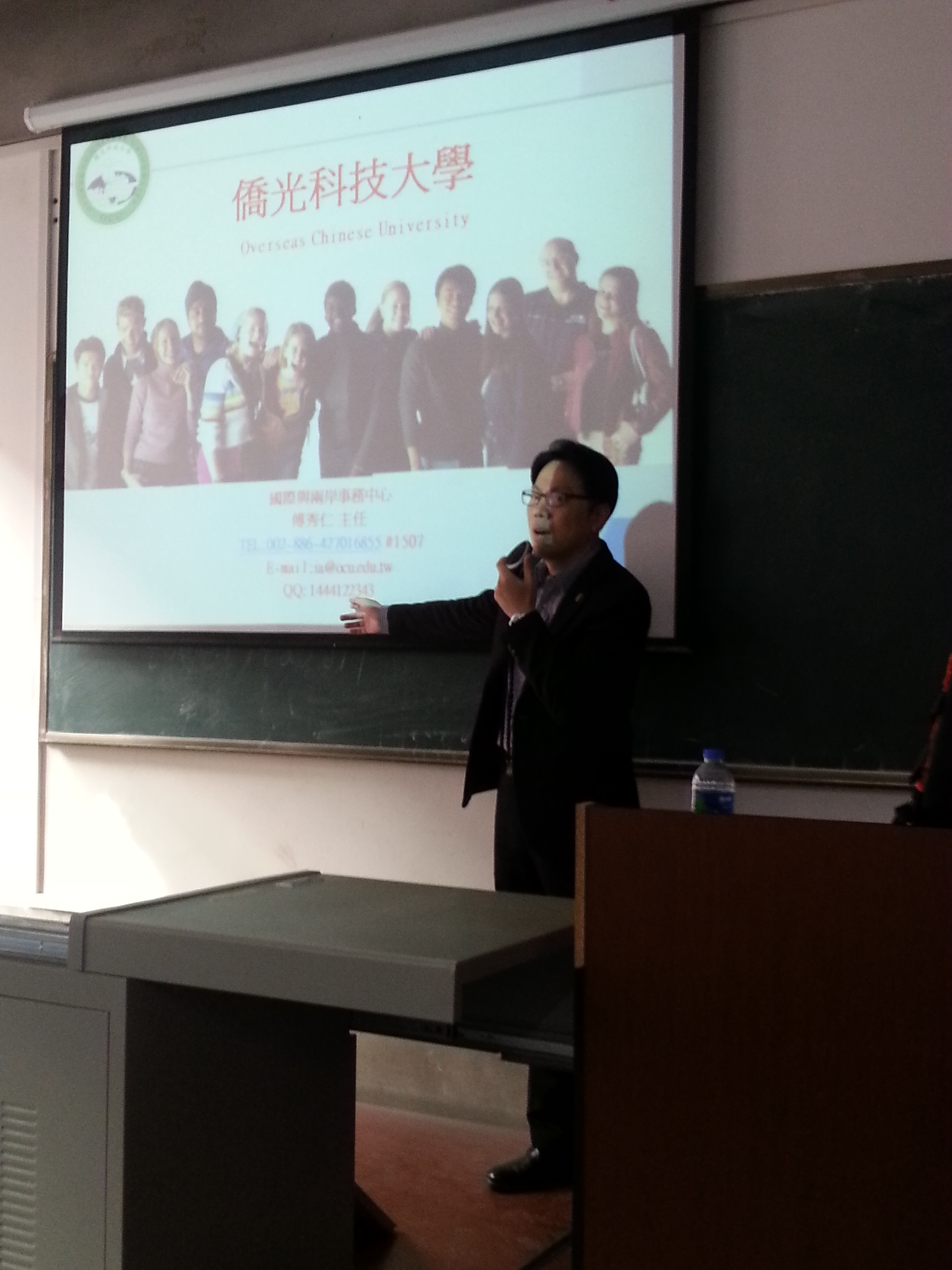 会后,我院组织了一场侨光科技大学招生说明会,由傅秀仁主任主讲,介绍了台湾高校的办学特点以及侨光科技大学的办学特色等情况,并与现场学生进行了交流互动。侨光科技大学是与我院建立友好院校关系的第二所台湾高校。相信两校在未来的合作中,一定会取得丰硕的成果。此次两校间合作关系的建立,标志着我院在两岸交流工作中又取得了新的进展。