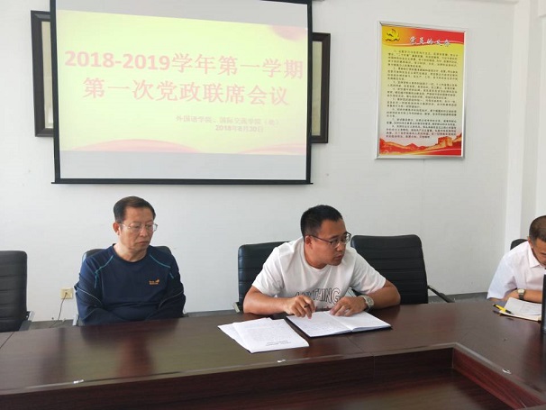 8月30日下午,我院在201会议室召开本学期第一次党政联席会议。会议由院长黄江主持,党总支书记于刚、副院长王丹、各专业学科带头人与教研室主任参加了此次会议。