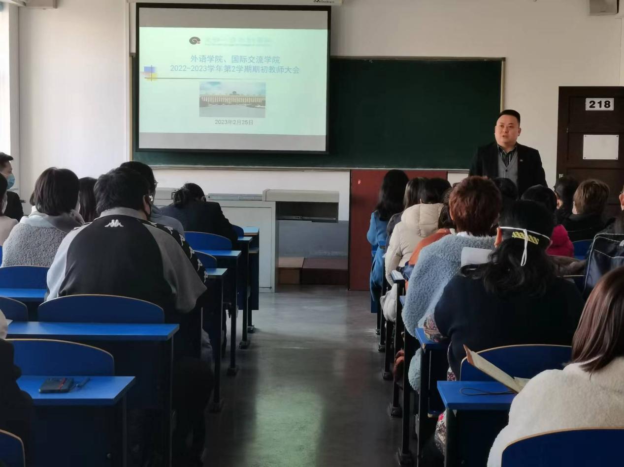 九层之台,起于垒土。2023225日外国语学院、国际交流学院隆重召开新院长的任命见面会和新学期教师大会,全体教师参加,会议副院长许可新主持。
