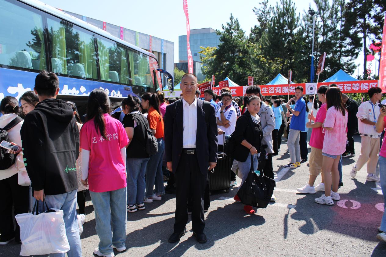 “接过你的行囊,我们就是一家人”,学院党政领导、专业教师、辅导员老师和学生干部、志愿者用温情和热情欢迎语迎接新同学的加入。迎新期间,日语教研室主任鲍永辉、英语教研室主任王桂梅负责迎新跟车,在学校班车上为家长和新生沿途讲解周边的环境、学校的发展历程和办学理念,并回答新生提出的各种问题,用热情的微笑、耐心的解答和贴心的服务让来自祖国各地的莘莘学子感受到长旅“家”一样的温暖。