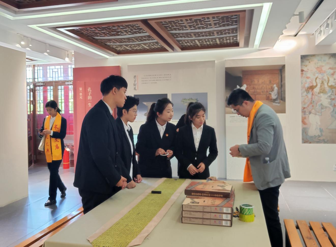 早上530分,我院志愿者们从学校出发前往现场。抵达场地,志愿者再次确认各岗位职责,整理着装、调节状态,迅速投入紧张有序的工作中,分别负责颁牌、接待、研学、看窗口、看守展厅等服务工作。在志愿者们的通力配合下,整个活动井然有序、有条不紊。在长春文庙的带领下,我院志愿者出色地完成了本次志愿工作,她们认真负责的工作态度,以及耐心细致的工作表现,赢得了参会人员与长春文庙的一致好评。