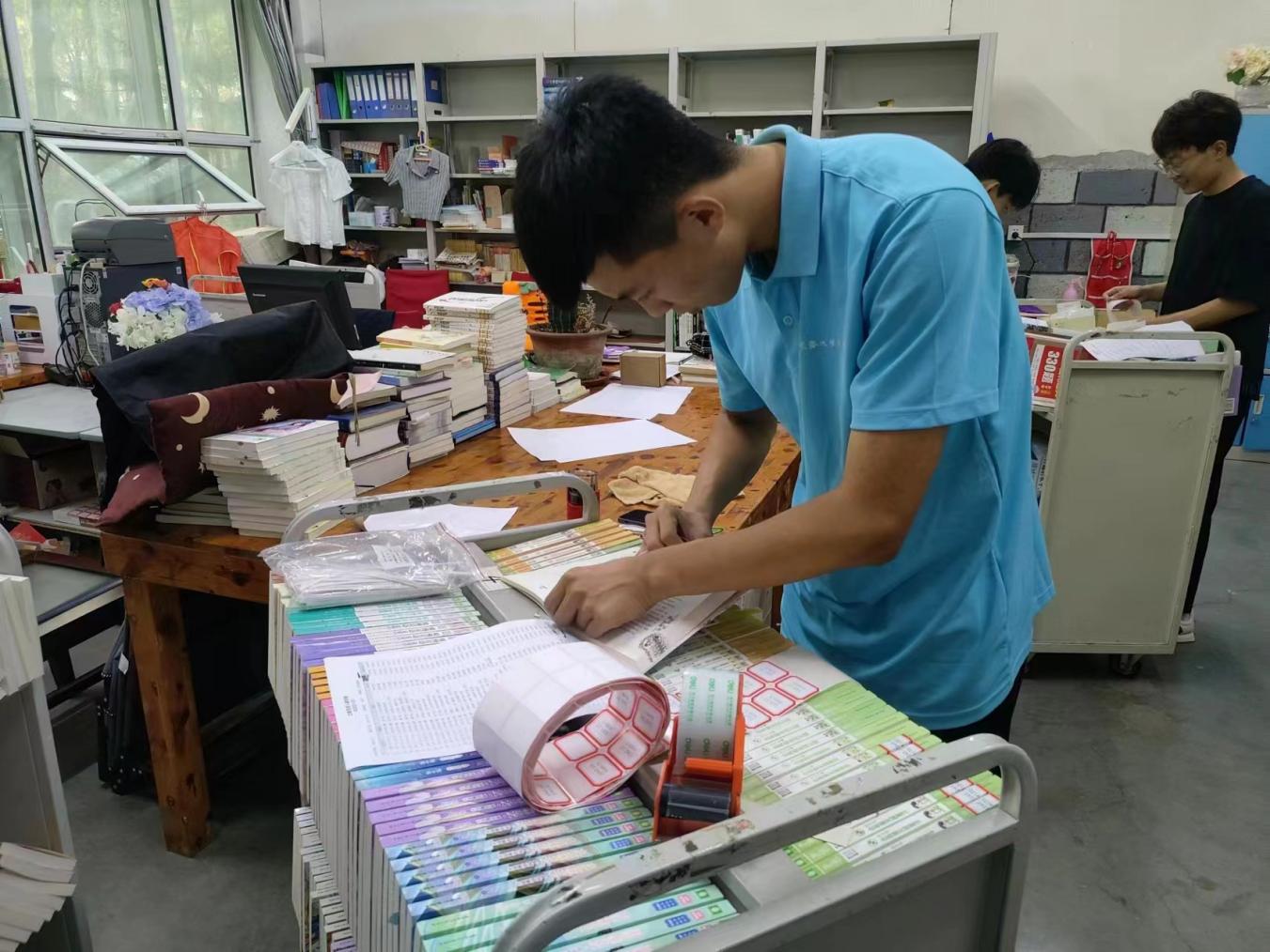 ▲为图书贴上磁条