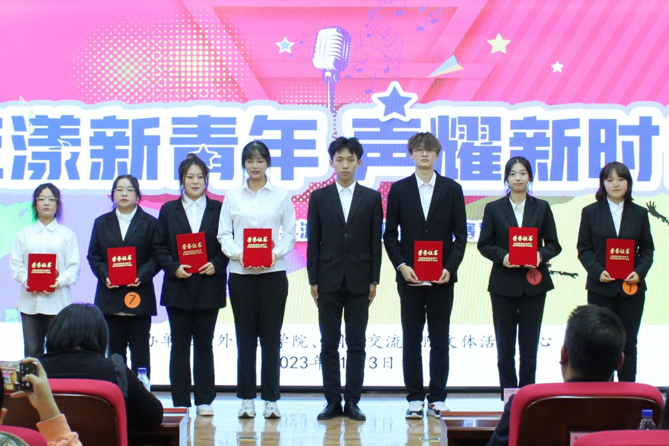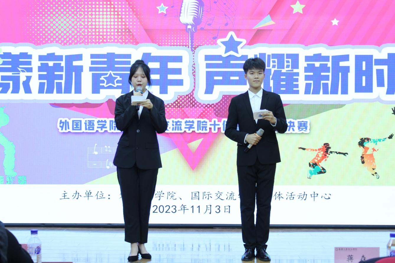 为进一步加强学院美育工作建设,促进学生德智体美劳全面发展,丰富学生的业余文化生活,11月3日下午,外国语学院、国际交流学院于筑梦报告厅成功举办“花漾新青年,声耀新时代”十佳歌手大赛决赛。学院党总支书记蒋森,团委学生副书记牛远哲,秘书长郭上瑜、韩家琪,学生会秘书长付延俊,文体活动中心秘书长肖晨,第十四届校园十佳歌手大赛亚军张达担任评委,团委书记戴军威及团学组织学生干部共同观看比赛,大赛由学生干部彭凌洁、宋津舟主持。