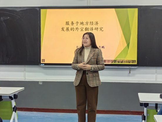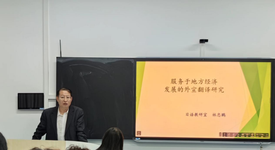 本次报告会的主讲人为日语专业带头人林忠鹏教授,他从“服务地方经济发展的必要性”入题,细致讲解了科研目标的现实意义,强调要立足于地方经济发展开展外语科学研究,并以吉林省世界文化遗产及长春市各大建筑群的外宣翻译工作开展情况为例,与在座的教师分享了旅游景点错译分析、旅游外语范式翻译等多方面多角度的研究方向。