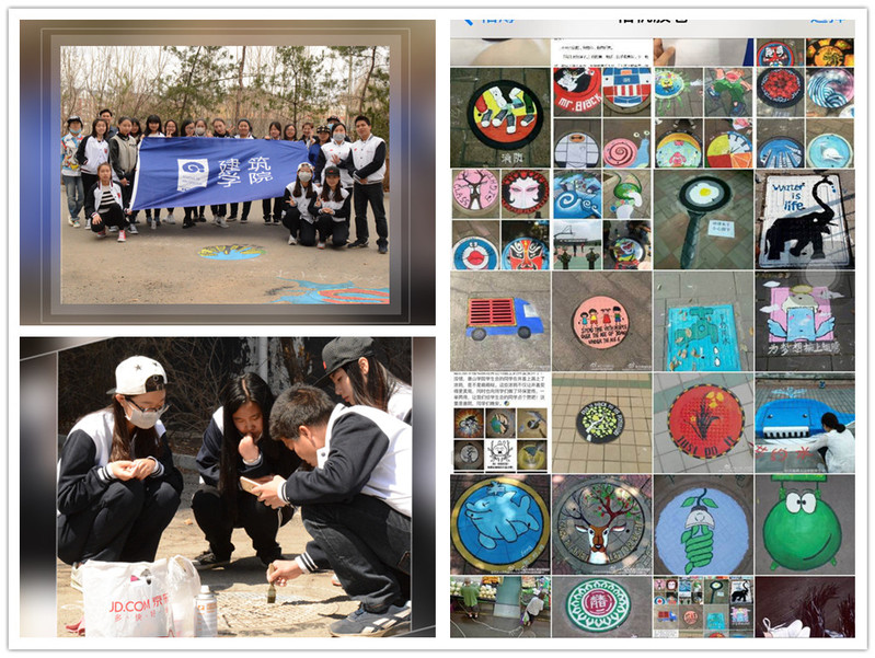 2016年4月23日,由我院学生会主办的“靓装井盖•美化校园”活动如期展开。23日上午9:00,学生会的成员和志愿者们分为3-4人为一小组,在校园各处的井盖进行涂鸦。同学们用心的构思不同内容,分为各种主题,每个井盖都需要经过标号,打扫,清洗,临摹,上色,封干定型等诸多环节,同学们都乐此不疲。校园内的道路上分散着多个三三两两的穿着校服认真创作的同学们,或蹲着,或坐着,精心的在井盖上涂鸦,力争绘出更精彩,更亮眼的图案。校园内不少学生经过时,都驻足观赏,纷纷对这些五彩斑斓,童真可爱的井盖竖起了大拇指。