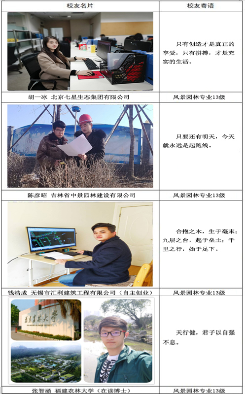 本专业践行“3+1”人才培养模式,以培养复合型、应用型专业人才为导向,注重园林规划设计能力、园林工程施工组织与管理能力、园林工程招投标概预算能力、园林植物栽培养护能力的培养,使学生在校期间将理论知识融入实践,实践能力得到提高,毕业后能够适应该行业人才市场的需求,受到用人单位的一致好评。近三年本专业毕业生综合就业率达到90%以上,工作岗位分布于各设计单位、园林建设单位、城市建设单位、旅游区、森林公园等。
