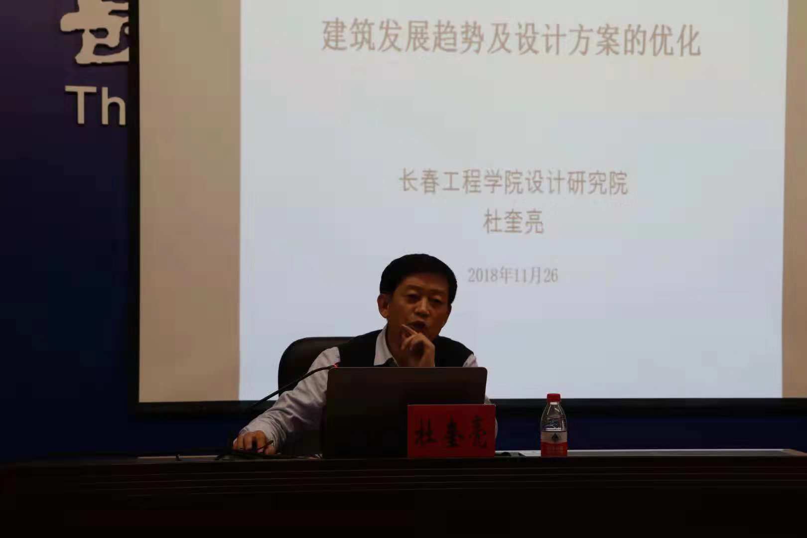 金沙官网客座教授、长春工程学院设计研究院总工程师、吉林省抗震专家、吉林省超限委员会专家、吉林省装配式专家组专家杜奎亮先生受邀成为本次主题的主讲嘉宾,参加本次活动的还有工学院院长李晓东,副院长郑志辉,土木工程教研室主任王玉英教授,建筑学专业教研室主任董峻岩教授。