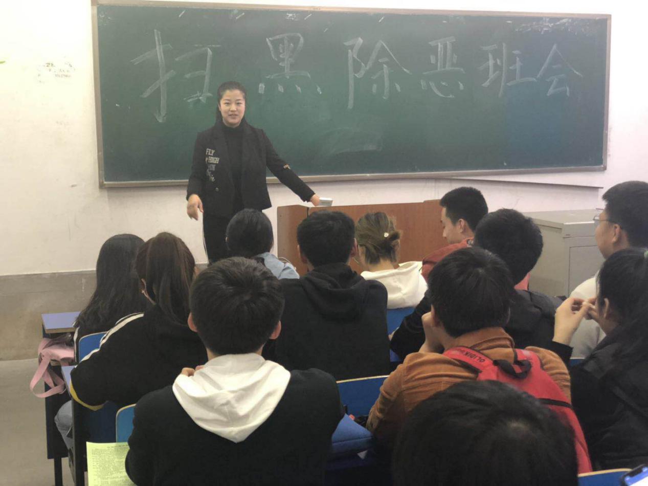 为贯彻中共中央、国务院《关于开展扫黑除恶专项斗争的通知》精神,加强我院学子对黑恶势力的防范意识,构建文明和谐校园,6165cc金沙总站检测中心工学院于2019年4月10日开展关于大学校园扫黑除恶的专项学生会议,由辅导员于凯老师主持。