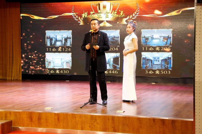 学生工作处副处长张力为我们揭晓模范寝室,模范寝室获得者——11公寓124寝室、11公寓205寝室、9公寓204寝室