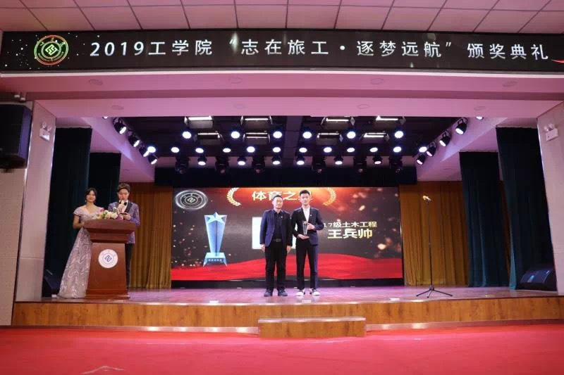 他们在操场上健步如飞、挥汗如雨,他们在球场上左突右防,彰显运动魅力与拼搏精神。开颁奖嘉宾工学院党总支书记凤龙为我们揭晓了体育之星,体育之星获得者——17级土木工程班王兵帅