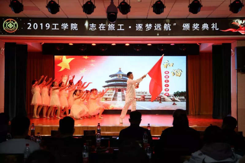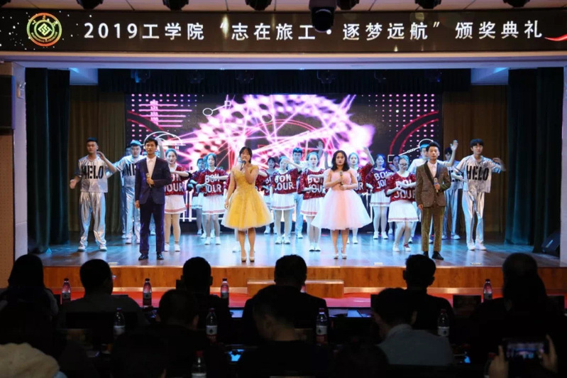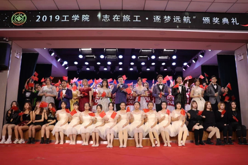 你我有个梦,编织美丽的中国。在歌曲《中国》中2019工学院“志在旅工•逐梦远航”颁奖典礼落下帷幕,所有参演人员集体合影,为此次颁奖典礼画上圆满的句号